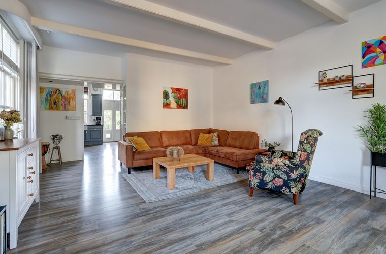 Dan de woning zelf: vol karakter en warmte. De balken in het plafond, het vele licht en de doordachte indeling zorgen voor een warme en fijne sfeer. De woonkamer ligt aan de voorzijde en heeft meerdere ramen, waardoor het daglicht rijkelijk naar binnen valt. Vanuit hier loop je zo door naar de keuken aan de achterzijde. De keuken biedt een directe toegang tot de ruime achtertuin. Vanuit de keuken, loop je via de hal naar een verrassende ruimte met sfeervolle Italiaanse tegels. Hier bevinden zich de bijkeuken, badkamer en het aparte toilet. En als kers op de taart: een heerlijke, lichte master bedroom mét openslaande deuren naar de tuin.