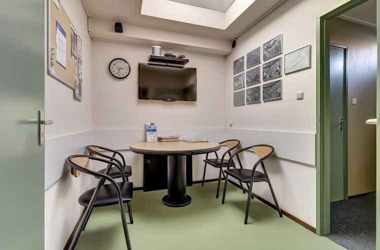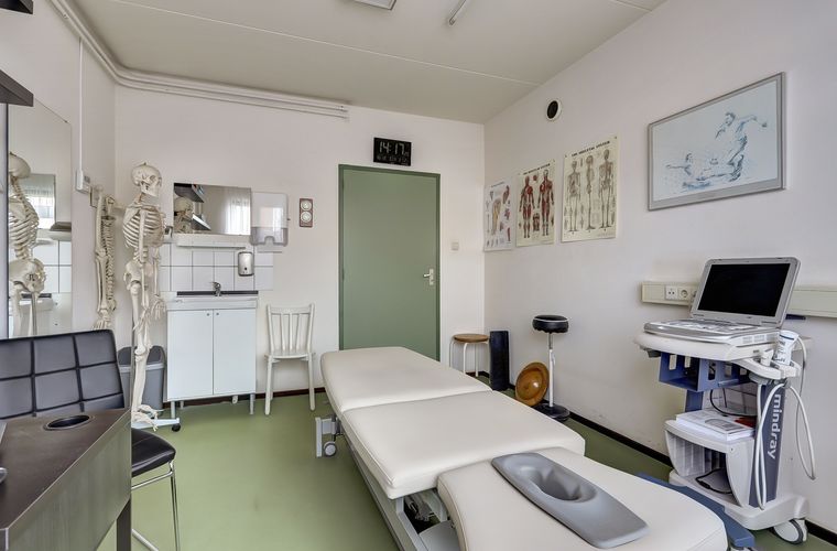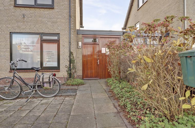 Entree met meterkast. Separaat, rolstoelvriendelijk toilet voorzien van wastafel. Ruime wachtkamer met lichtkoepel en televisie, wat zorgt voor een aangename en lichte sfeer. Het praktijkgedeelte beschikt over drie behandelkamers, waarvan twee voorzien zijn van een eigen wastafel. De kleinste behandelkamer is voorzien van extra daglicht dankzij een lichtkoepel. De behandelkamer aan de achterzijde heeft bovendien directe toegang tot de achtertuin. Verder is er een open keukenblok met spoelbak, een aparte kantoorruimte en een opbergkast met cv-installatie (Bosch) ten behoeve van de praktijk.