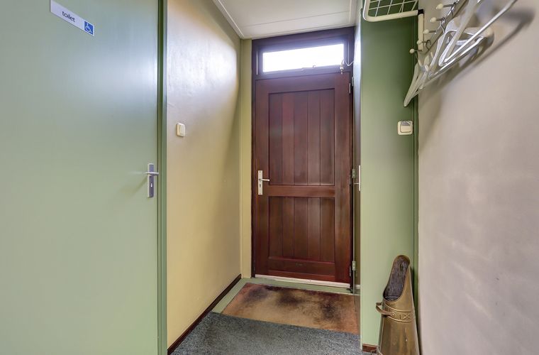 Separate entree met meterkast. Het voormalige toilet is omgebouwd tot een praktisch washok met witgoedaansluitingen. Vanuit de hal is de trap naar de eerste verdieping bereikbaar.