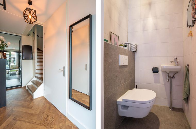 - De gehele woning is voorzien van een originele eiken vloer: beneden in visgraat en boven in rechte leg