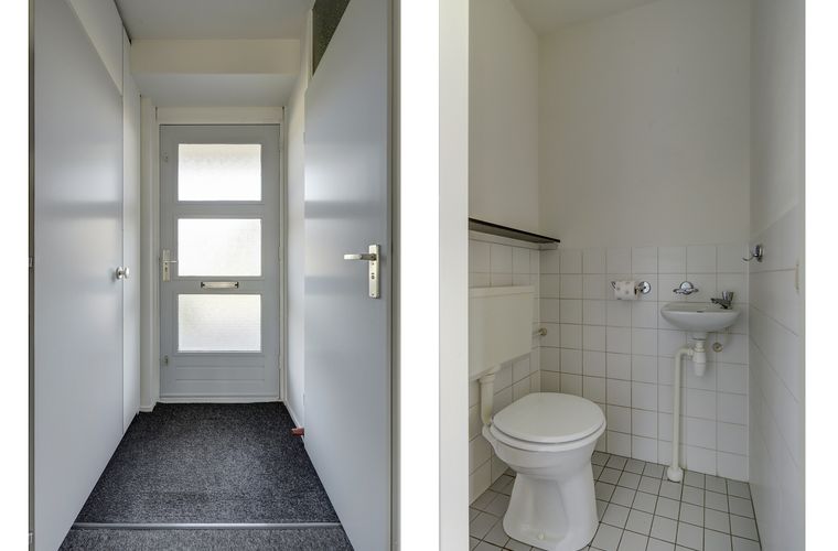 Begane grond: entree; hal met meterkast; toilet met fonteintje; toegang tot de inpandige garage met witgoedaansluitingen; trapopgang naar de verdieping; doorloop naar de ruime woonkamer met trapkast en schuifpui naar het terras en de achtertuin; eetkamer met veel lichtinval; keuken aan de voorzijde voorzien van spoelbak, losstaande vaatwasser, losstaand fornuis en losstaande koelkast met vriezer.