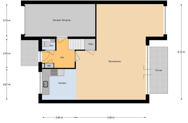 Op de begane grond valt direct de prettige leefruimte op. De woonkamer is royaal opgezet en heeft via de schuifpui een mooie verbinding met het zonnige terras en de achtertuin op het zuiden. De eetkamer profiteert van veel lichtinval en maakt dit een heerlijke plek voor lange avonden aan tafel. Aan de voorzijde ligt de keuken, praktisch ingericht en voorzien van onder meer een spoelbak en diverse losstaande apparatuur. Extra prettig zijn de inpandige garage en de eigen oprit met plaats voor twee auto’s.