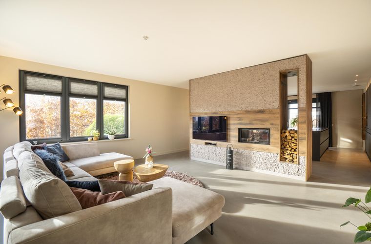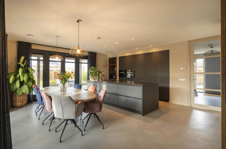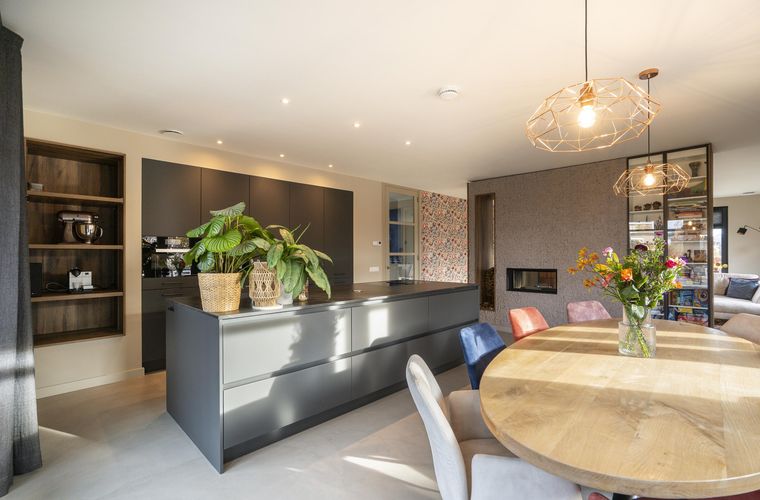Dit is niet zomaar een huis, dit is thuiskomen. Alles klopt: de moderne uitstraling, de hoogwaardige afwerking, de ruimte, en die fijne rust die meteen voelbaar is. Binnen en buiten sluiten hier naadloos op elkaar aan. In de zomer trek je de 4 tuindeuren open en sta je zó onder de sfeervolle overkapping. Kinderen ravotten op het gras of springen op de trampoline, terwijl jij je koffie drinkt aan het water. En ’s avonds? Dan kijk je vanuit je keuken door de stijlvolle roomdivider naar de houtkachel.
