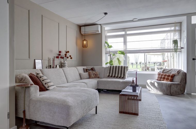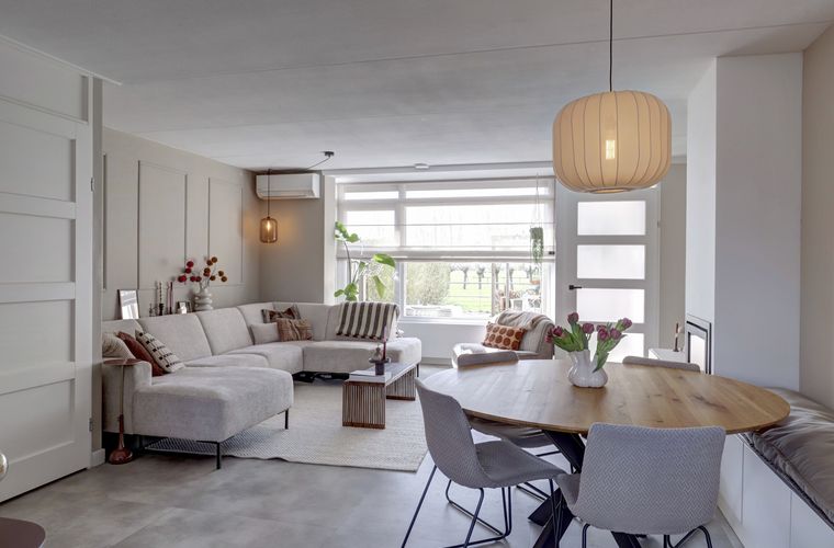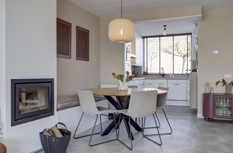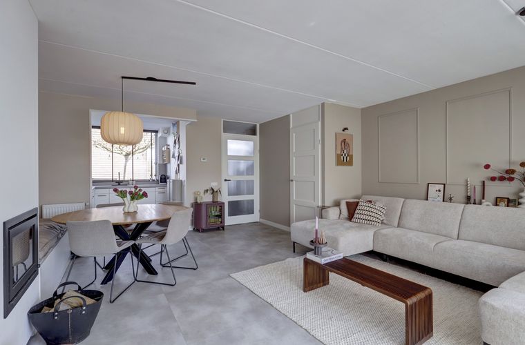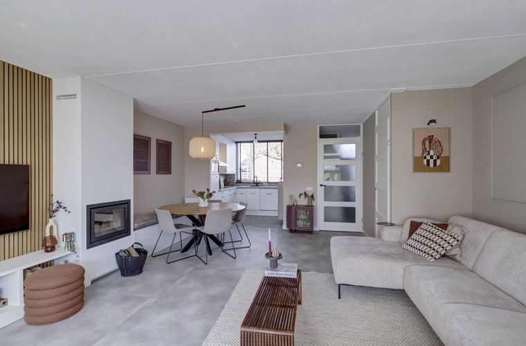 Aan de Burgemeester Schakelstraat 5 in Noordeloos staat deze goed verzorgde tussenwoning die je meteen een prettig gevoel geeft. Binnen is het licht, netjes afgewerkt en helemaal van nu, terwijl buiten juist dat vrije uitzicht voor het echte wow-effect zorgt. De woonkamer is een fijne leefruimte met airco, een gezellige houtkachel en open verbinding naar de keuken.