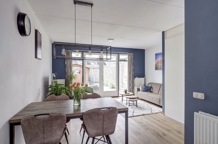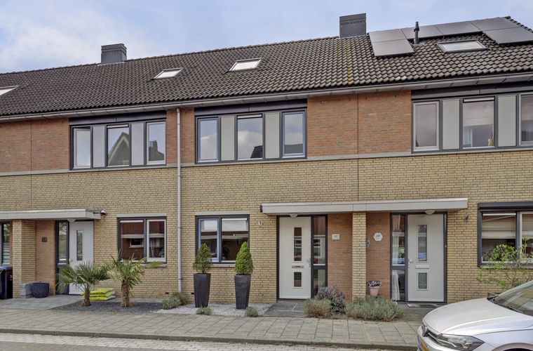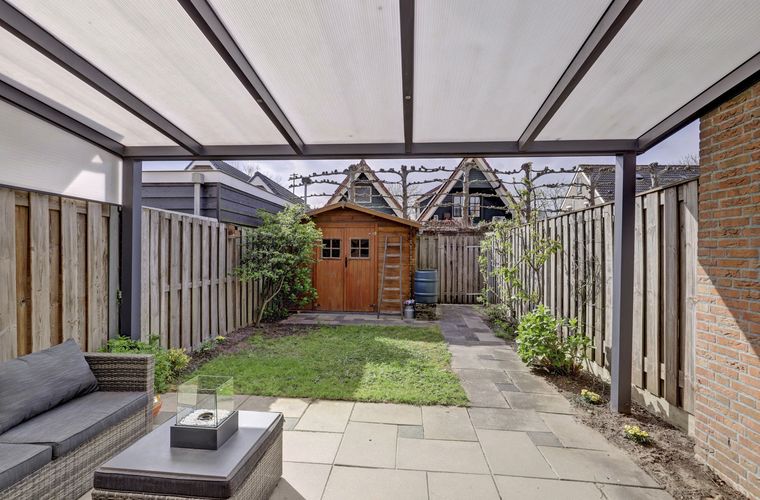 Jonge tussenwoning met overkapping en zonnige tuin.