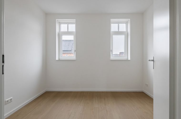 Eerste verdieping: overloop; twee volwaardige slaapkamers; badkamer voorzien van douche, wastafel en toilet; trapopgang naar de tweede verdieping.