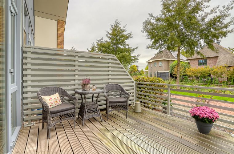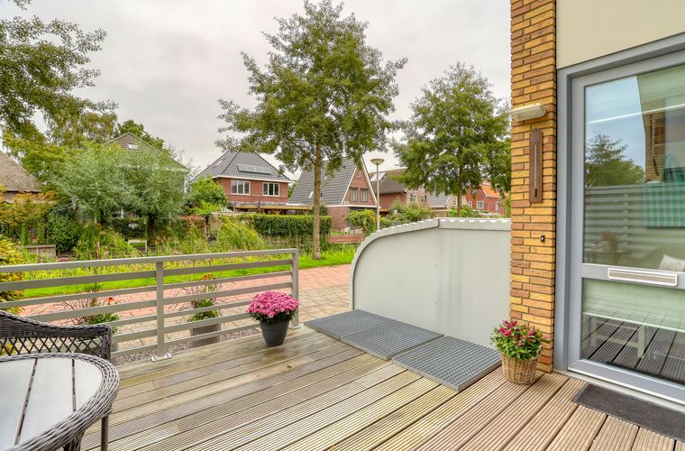 Aan de voorkant van de woning vind je een fijn terras waar je lekker van het zonnetje kunt genieten. Geen tuinonderhoud dus, wél buitenruimte. Handig!