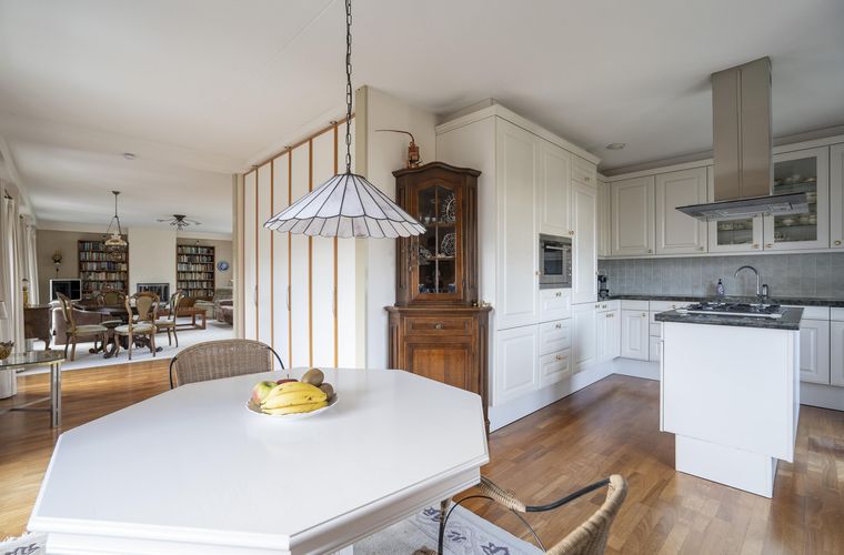 De open leefruimte is absoluut het centrale punt van het appartement en biedt diverse gebruiksmogelijkheden. Geheel naar eigen wens kan iedere hoek een eigen bestemming krijgen. Met daaraan grenzend een ruime keuken voorzien van een kookeiland met alles erop en eraan: 4-pits kookplaat, spoelbak, afzuigkap, vaatwasser, combi-oven en een ruime inbouw koel- en vriescombinatie. Het zonnige balkon op het zuiden, perfect voor een kop koffie met uitzicht op de stad, verbindt de woonruimte en is toegankelijk vanaf twee zijden. De huidige indeling telt één ruime slaapkamer, maar er is volop mogelijkheid om extra kamers te realiseren. De badkamer is voorzien van een ligbad, wastafelmeubel, douche, extra toilet en witgoedaansluitingen.