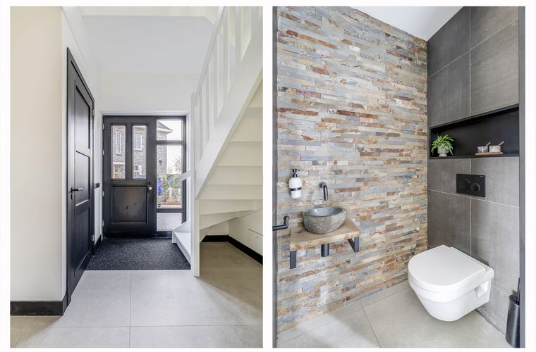 Stap binnen via de stijlvolle entree met indrukwekkende doorkijk tot aan de tweede verdieping. De woonkamer is dankzij de erker heerlijk licht en staat in open verbinding met de luxe keuken, het hart van het huis. Hier kook je op een modern eiland met ingebouwde afzuiging, terwijl de Quooker, dubbele vaatwassers en luxe inbouwapparatuur het je makkelijk maken. Via de schuifpui stap je zo het terras op, ideaal voor lange zomeravonden aan het water van je eigen zwembad.