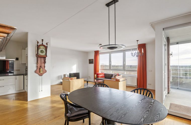 Welkom op een van de mooiste plekjes van Leerdam! Dit lichte en goed onderhouden hoekappartement is écht zo’n woning waar je binnenkomt en denkt: "ja... dit is ‘m". De woonkamer is lekker ruim en dankzij de vele ramen stroomt het daglicht volop naar binnen. En dan dat uitzicht… wijds, groen en altijd in beweging. Je kijkt uit over de Linge én richting de omliggende dorpen aan de zuidkant van Leerdam, boomgaarden én het (rijksmonumentaal beschermd) bos van kasteel Heukelum. Of je nu binnen zit of op het royale balkon met glazen schuifwanden, je geniet hier elke dag van het buitenleven.