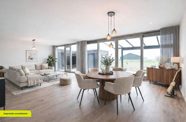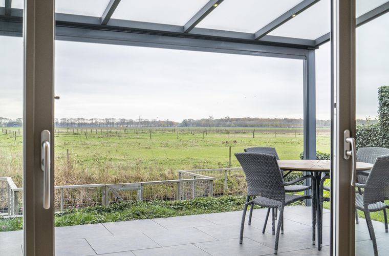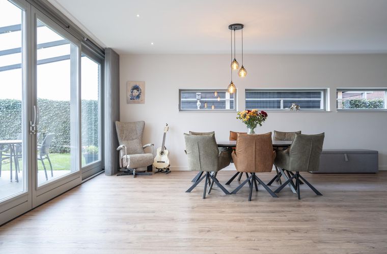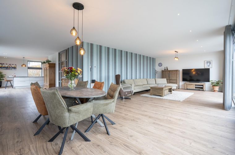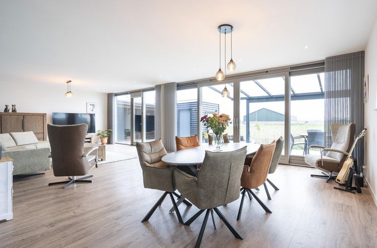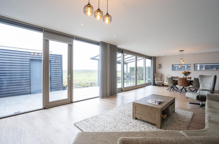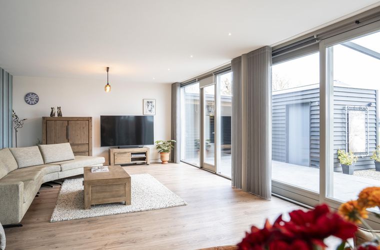 Vanuit de woonkamer is direct de prachtige ligging van deze woning zichtbaar: wat een uitzicht! De woonkamer is uitgevoerd met een schuifpui en staat op meerdere punten in contact met het buitenleven.