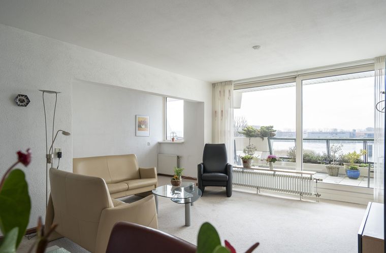 De royale woonkamer biedt een weids uitzicht over de Beneden-Merwede, een uitzicht dat nooit verveelt. Vanuit de woonkamer heb je toegang tot het schitterende terras: de perfecte plek om te genieten van de zon en de rivier!