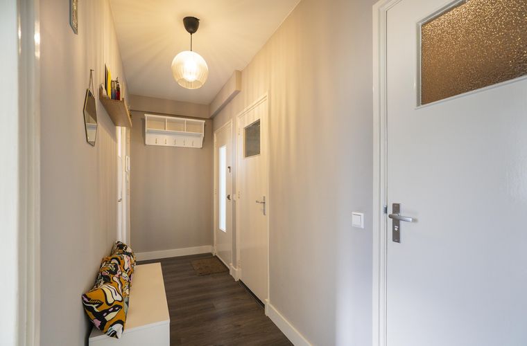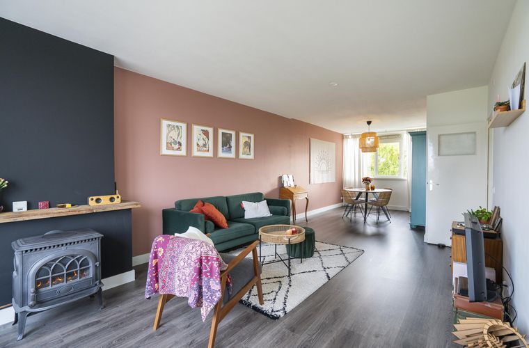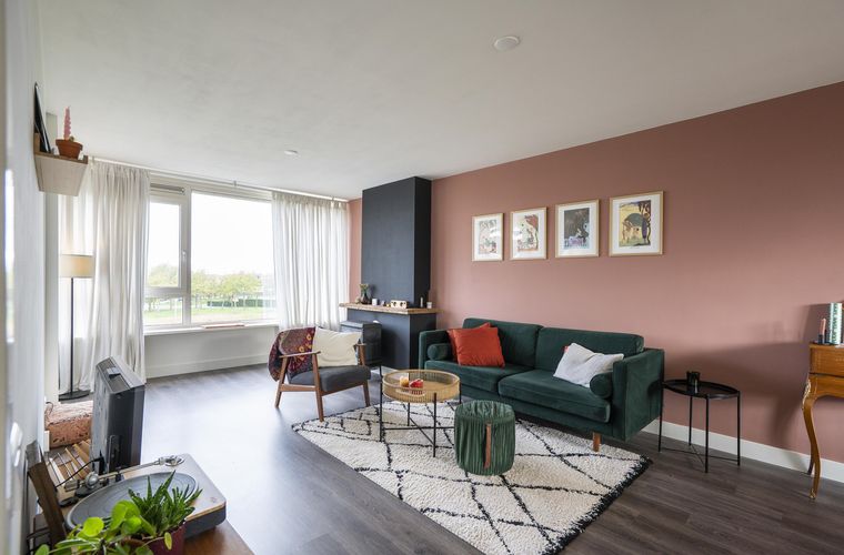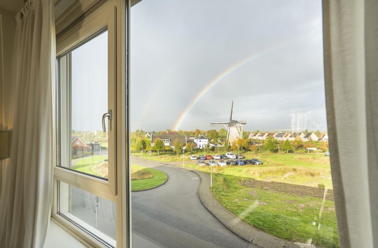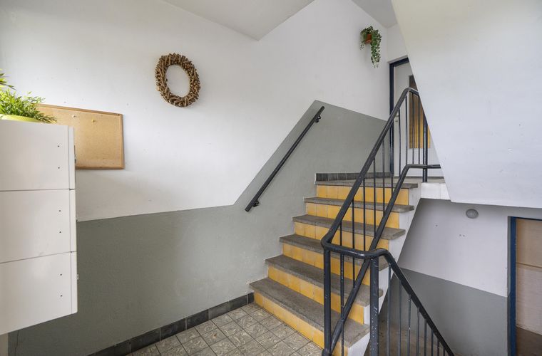 De gezamenlijke entree en het trappenhuis brengen je naar de woning. Binnen kom je in de hal met toegang tot de verschillende vertrekken. De woonkamer is ruim opgezet en heeft veel lichtinval. Hier vind je ook een gezellige gashaard en een airco (uit 2024) voor zowel verwarmen als koelen. Vanuit de woonkamer bereik je de keuken die is voorzien van diverse apparatuur. Vanuit de keuken stap je het balkon aan de voorzijde op, waar je prachtig uitzicht op de molen hebt.