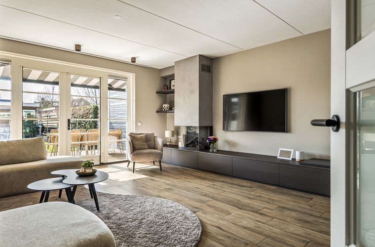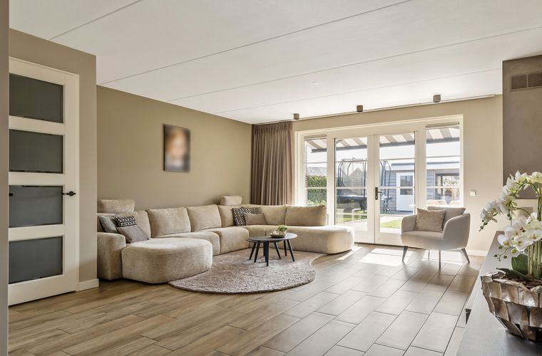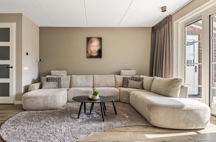 De woonkamer is tuingericht en heerlijk licht dankzij de openslaande deuren...