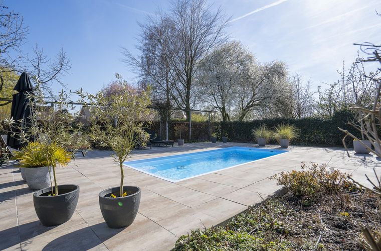 - Verwarmd zwembad met zomer- én winterdek en tegenstroominstallatie (Met een tegenstroominstallatie is een intensieve zwemtraining ook mogelijk.)