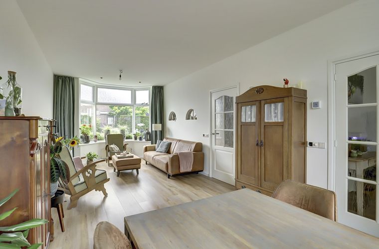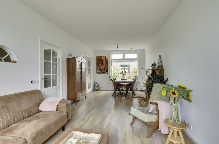 Deze karakteristieke twee-onder-een-kapwoning aan het Laantje van Van Iperen heeft meer in huis dan je op het eerste gezicht zou denken. Niet alleen woon je hier sfeervol in een lichte woning met charmante details zoals stalraampjes en een erker, je beschikt ook over een binnenplaats & garage! Binnen tref je een lichte woonkamer met sfeervolle erker en volop raampartijen. De keuken is netjes en functioneel, voorzien van alle gemakken waaronder een quooker en combi-oven. Vanuit de hal kom je in het klompenhok, dat via een schuifdeur toegang geeft tot de knusse binnenplaats. Verder zijn er een bijkeuken, garage met roldeur (welke goed te gebruiken is met een kleine auto). Boven vind je drie slaapkamers (waarvan de master met dakkapel), een badkamer met toegang tot het dakterras, en een ruime zolder.