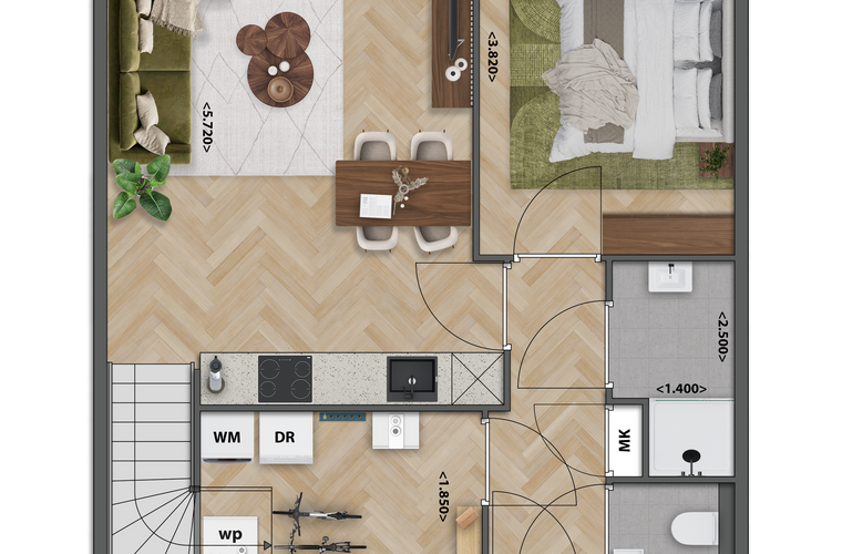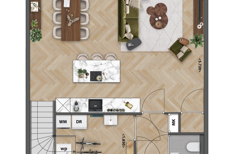 De woning is extra breed (7,5 meter) en biedt daardoor een ruim en licht leefgedeelte met grote raampartijen en een directe verbinding naar buiten. De natuurlijke materialen en warme kleurstelling sluiten prachtig aan bij de landelijke omgeving en geven de woning een moderne, tijdloze uitstraling. Of je nu kiest voor comfort op latere leeftijd, een toekomstbestendige woning zoekt, of gewoon wilt genieten van het buitenleven, bouwnummer 11 biedt het allemaal.
