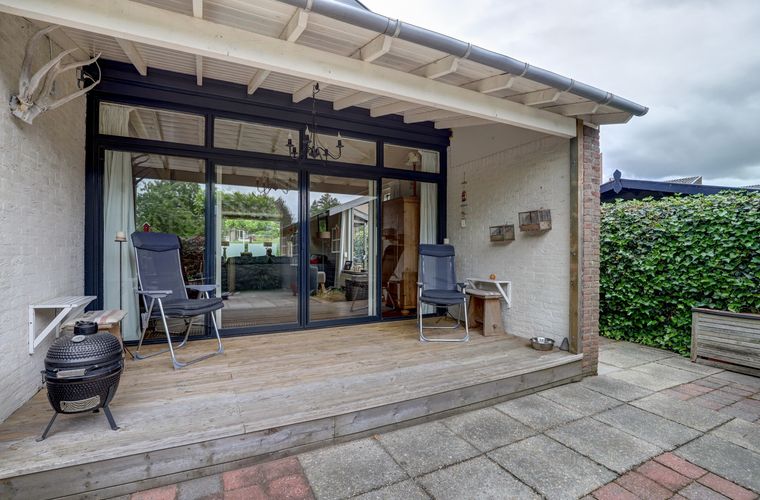 Buiten: oprit met ruimte voor twee auto’s; houten schuur voorzien van elektra; een aangelegde tuin voorzien van terras en overkapping.