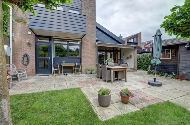 Binnen tref je een lichte woonkamer met schuifpui naar de tuin en een gezellige haard. De open keuken is een droom voor kookliefhebbers: denk aan een Boretti-fornuis met dubbele oven, een inbouwkoffiezetapparaat en zelfs een tweede keukenopstelling in de garage. Boven tref je drie slaapkamers, een nette badkamer en extra bergruimte via de vlizotrap. De achtertuin is een heerlijke plek om te genieten met familie en vrienden, met zijn allen gezellig onder de overkapping of lekker in de zon op het terras.