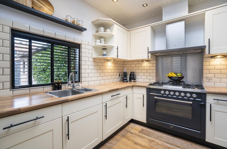 Begane grond: hal voorzijde met trapopgang, trapkast en toilet met fonteintje; tuingerichte woonkamer met airco, houten vloer, vloerverwarming en openslaande deuren naar de achtertuin; open keuken met Boretti 4-pits gasfornuis met grillplaat, 90 cm oven, combimagnetron, afzuigkap (2025), koelkast (2024), spoelbak, vaatwasser en lichtkoepel; vanuit de tuin toegang tot de garage met vaste kasten, witgoedaansluitingen, cv-installatie en elektra.
