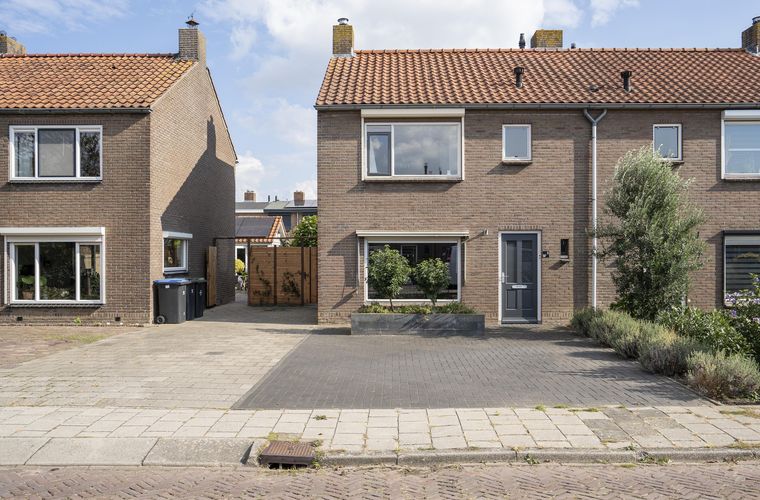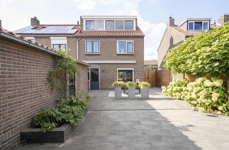 Gemoderniseerde 2-onder-1-kapwoning met overkapping, grote achtertuin en parkeerplaats.