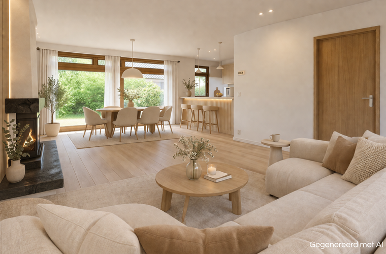 Binnen valt meteen op dat dit een woning is met karakter én flexibiliteit. De woonkamer met open haard vormt een fijne leefruimte en is samen met de hal voorzien van vloerverwarming. Wat deze woning extra interessant maakt, is de opzet van de begane grond. Met een slaapkamer en badkamer beneden is gelijkvloers wonen mogelijk, maar de ruimte leent zich net zo goed voor andere woonwensen, zoals een werkplek aan huis, hobbyruimte of een levensloopbestendige indeling. Ook de inpandig bereikbare garage is zo’n ruimte waar je alle kanten mee op kunt, mede dankzij de verwarming, wateraansluiting, elektra en vliering.