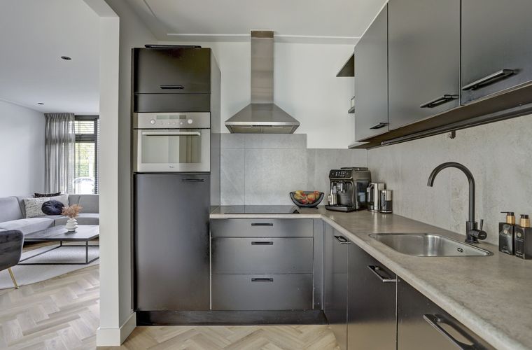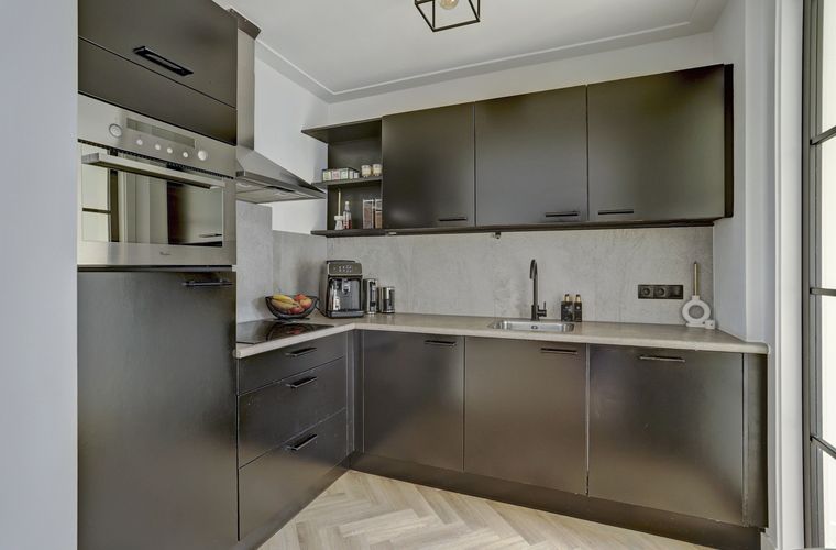 - Stijvolle afwerking met visgraatvloer, staallook deuren en zwarte keuken