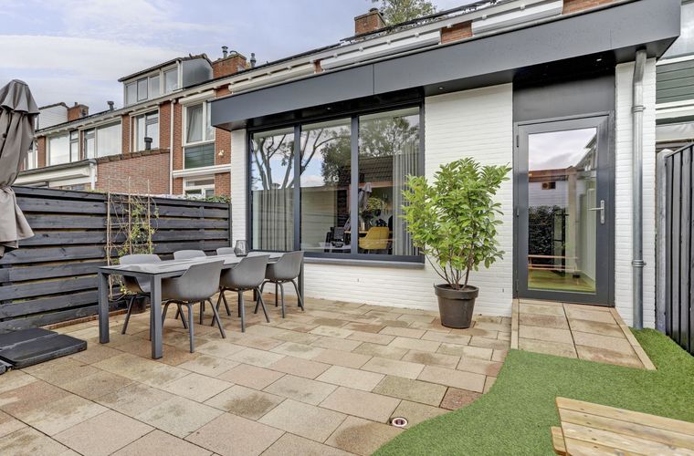 Achter de woning wacht een zonnige tuin met overkapping, stenen berging en een handige achterom. Ideaal voor de fietsen, of kids die direct naar de speeltuin om de hoek willen. Kortom: een fijne gezinswoning in een rustige, kindvriendelijke buurt.