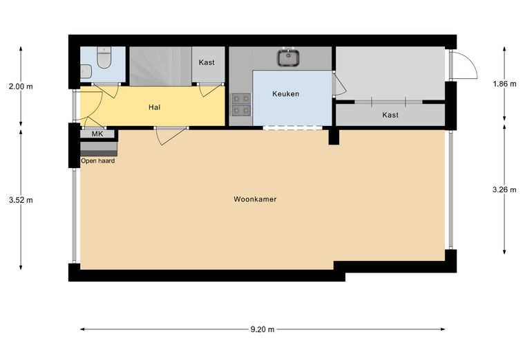 Begane grond: entree via de hal aan de voorzijde; hal met meterkast, modern toilet met fonteintje, trapkast en trapopgang naar de eerste verdieping; lichte woonkamer voorzijde met doorloop naar de eetkamer in de uitbouw aan de achterzijde; halfopen keuken voorzien van, 4-pits inductiekookplaat, combi-oven, spoelbak, vaatwasser en koelkast. Vanuit de keuken loop je door naar een ruimte met een vaste kast en toegangsdeur naar de tuin.