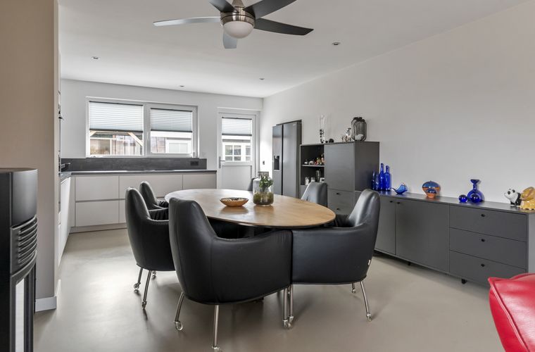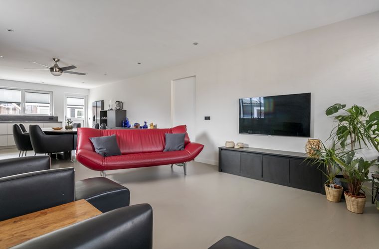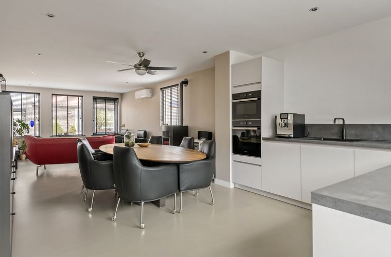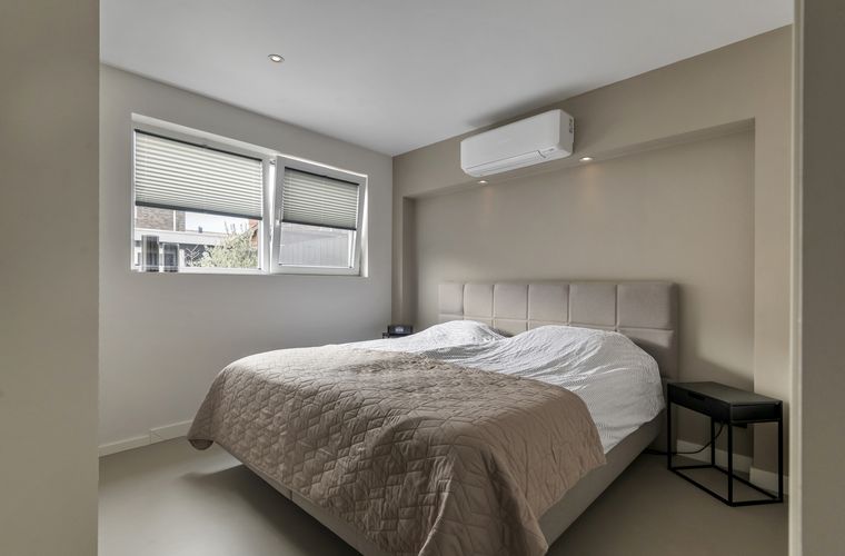 Binnen is het strak, comfortabel en slim ingedeeld. Door de uitbouw is er op de begane grond een mooie leefruimte ontstaan en voelt het geheel zeer prettig aan. Met onder andere een moderne badkamer, een open keuken met alles erop en eraan, airco’s die verwarmen plus koelen en HUE-verlichting voor de juiste sfeer. Door de gehele woning is overal aan gedacht. De etage biedt extra ruimte; perfect te gebruiken als extra slaapkamer, werkkamer of logeerruimte.