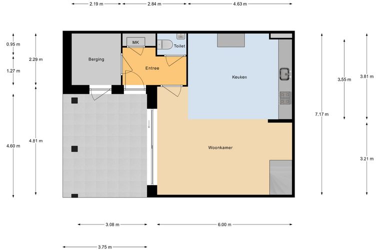 - Berging zowel vanaf buiten als binnen bereikbaar