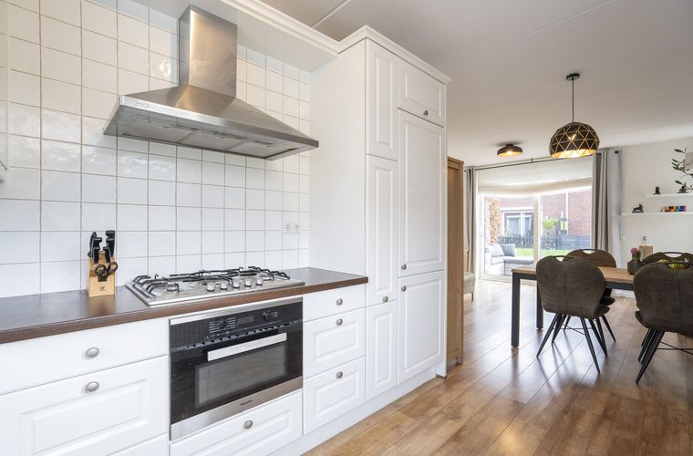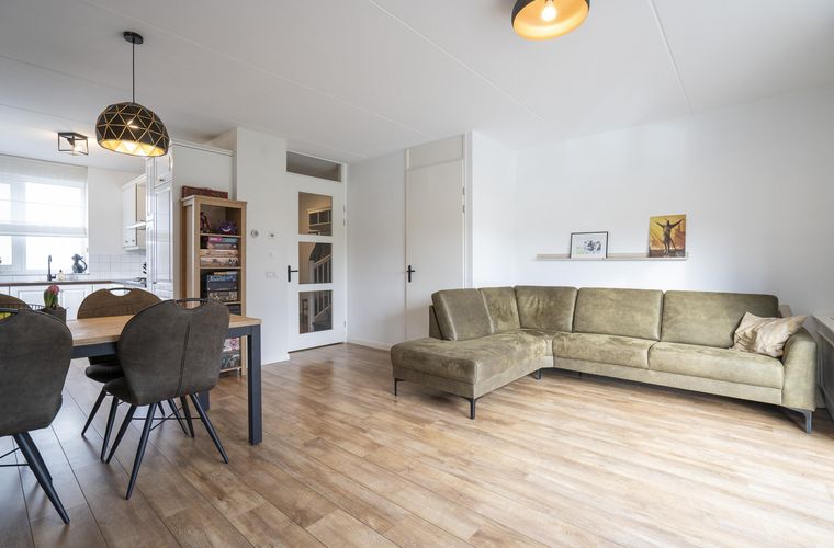 De woonkamer is licht en comfortabel, met een schuifpui naar buiten en airco voor warme dagen. De open keuken sluit hier naadloos op aan en is van alle gemakken voorzien. Boven vind je naast de drie slaapkamers, een complete badkamer met ligbad. Aan de voorzijde ligt de woning aan een gemoedelijk hofje met een gezamenlijke fietsenberging, rustig wonen, maar alles dichtbij.