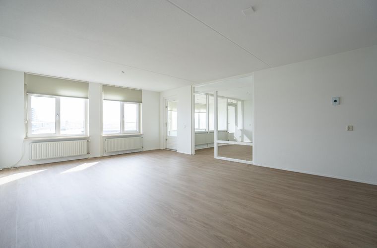 Aangrenzend bevindt zich een multifunctionele kamer, te gebruiken als extra slaap- of eetkamer. Deze ruimte is desgewenst eenvoudig bij de woonkamer te betrekken, zodat een nog groter en lichter leefgedeelte ontstaat. Vanuit deze ruimte is naast de badkamer ook de loggia bereikbaar.