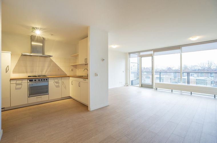 Vanuit de hal kom je binnen in de open keuken, de keuken is functioneel ingericht met onder andere een oven, koelkast, vaatwasser en gaskookplaat. Er is voldoende werk- en kastruimte voor dagelijks gebruik. De woonkamer sluit direct aan op de keuken, de woonkamer is ruim opgezet en profiteert van veel daglicht dankzij de glazen pui over de volledige breedte. Hierdoor voelt de ruimte prettig licht. Vanuit de woonkamer heb je toegang tot het balkon op het noordoosten. Dit balkon ligt rustig en biedt een fijne plek om buiten te zitten. Het elektrische zonnescherm zorgt voor comfort op zonnige dagen.