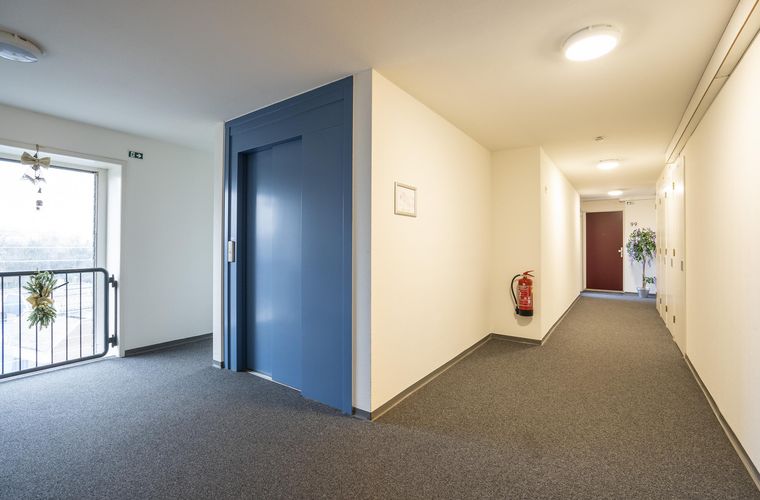- Een volledig gelijkvloers appartement op de derde verdieping, bereikbaar via een lift