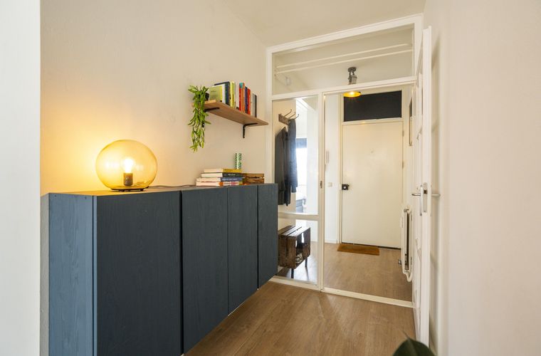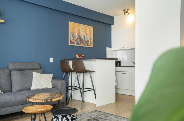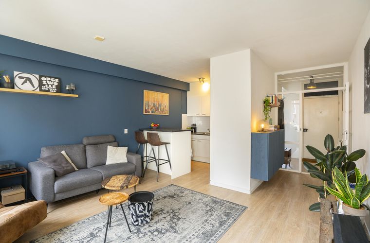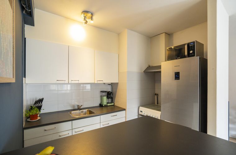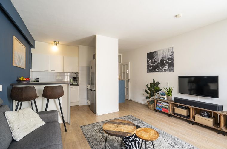 De woonkamer is licht en sfeervol, met een open keuken voorzien van ruime ontbijtbar. Een glazen deur scheidt de hal en de woonkamer, wat zorgt voor extra licht en een open gevoel. De slaapkamer biedt voldoende ruimte en grenst aan een keurige badkamer met inloopdouche, toilet en wastafel. Bovendien beschik je over een eigen parkeerplek op het afgesloten parkeerdek, zeldzaam in het centrum!