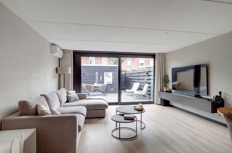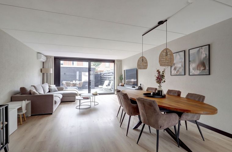 - Lichte leefruimte met airco en schuifpui naar de tuin
