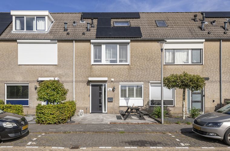 De lichte woonkamer is voorzien van openslaande deuren naar de tuin, en de moderne open keuken is uitgerust met alle nodige inbouwapparatuur. Op de eerste verdieping tref je drie fijne slaapkamers, allemaal voorzien van rolluiken. De badkamer is compact en compleet met een douche, toilet en wastafel. De tweede verdieping biedt volop extra ruimte: een voorzolder met airco, witgoedaansluitingen en veel bergruimte, plus een vierde slaapkamer met dakramen, een ingebouwde schoenenkast en toegang tot een bergzolder. Buiten kun je heerlijk zitten onder de aluminium overkapping met sfeervolle spotjes, terwijl de kinderen veilig kunnen spelen op het speelpleintje direct achter de woning.