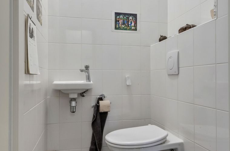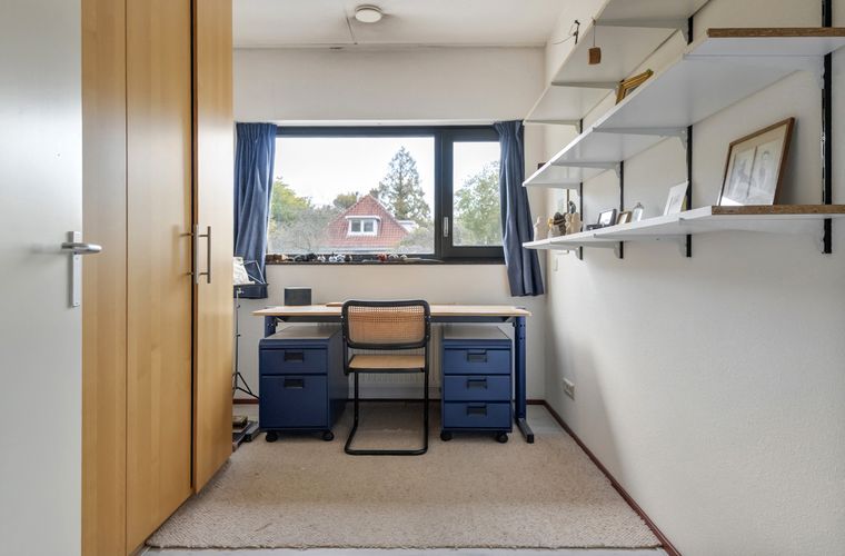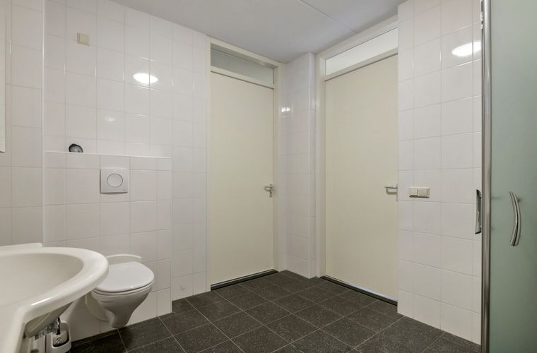 Vanuit zowel de hal als de slaapkamer is er toegang tot de badkamer, wat extra comfort biedt in het dagelijks gebruik. Daarnaast is er een separaat toilet, een extra werk/hobbykamer en een berging met wasruimte in de woning zelf. Tevens is er op de begane grond een berging van circa 5 m² aanwezig, voorzien van elektra.