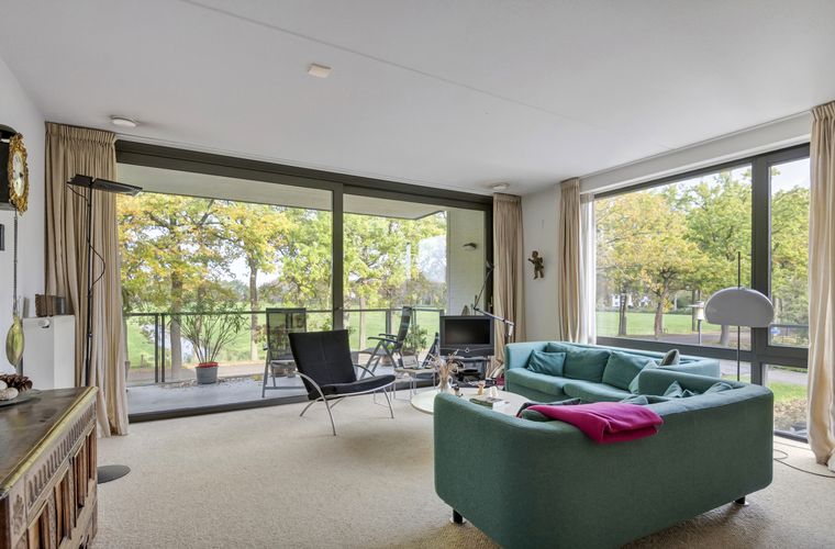 De lichte woonkamer met brede schuifpui naar het balkon zorgt voor veel natuurlijk licht en een ruimtelijk gevoel. Hier geniet je van een vrij...