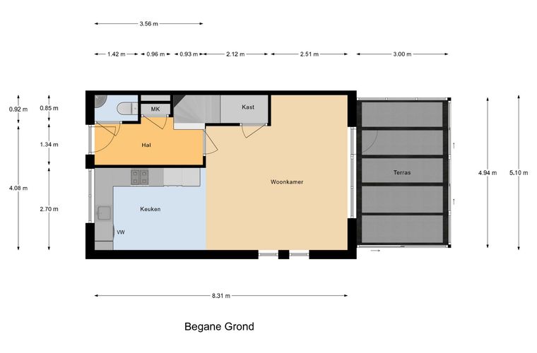 Begane grond: entree; hal met meterkast, garderobe, toiletruimte en trapopgang; open keuken in hoekopstelling aan de voorzijde met inbouwapparatuur (o.a. vaatwasser, spoelbak, gaskookplaat, afzuigkap, combi-oven, koelkast en vriezer; woonkamer aan de achterzijde met praktische trapkast en deur naar de serre; volledig afsluitbare serre, een heerlijke extra plek om lang van het seizoen te genieten en welke toegang geeft tot de tuin; zonnig gelegen op het westen met vrijstaande houten berging, een achterom en extra houten overkapping.