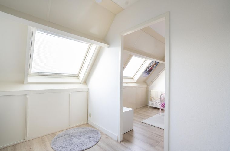Tweede verdieping: de tweede verdieping biedt toegang tot de CV-ruimte met opstelplaats van de CV-installatie en de aansluitingen voor de wasapparatuur, een aparte bergruimte en nog een extra slaapkamer! De slaapkamer is uitgevoerd met een wastafel en een groot dakraam.