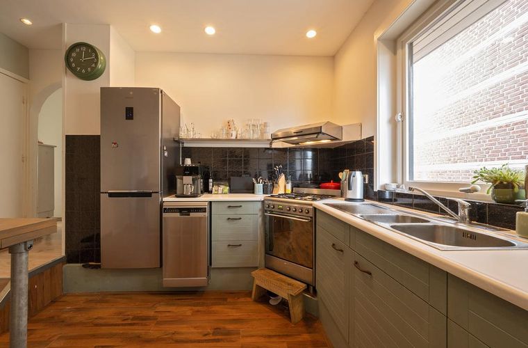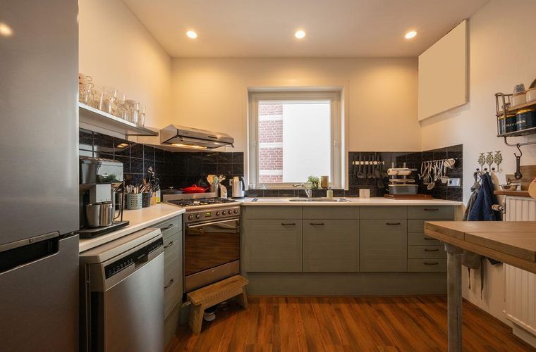 De keuken is voorzien van een koelkast, vriezer, oven, 4-pits gasfornuis, vaatwasser en afzuigkap.