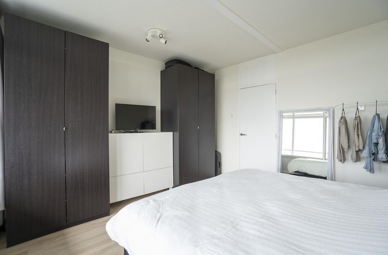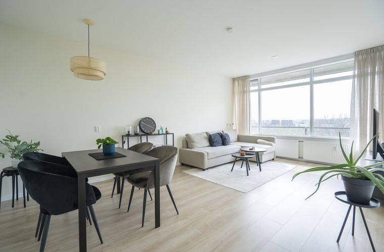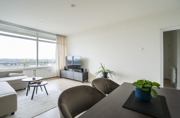De ruime woonkamer is voorzien van een grote raampartij, waardoor er veel daglicht de kamer binnenkomt. Geniet daarnaast iedere dag van een prachtig en uniek uitzicht. Bij helder weer is zelfs de skyline van Rotterdam zichtbaar.