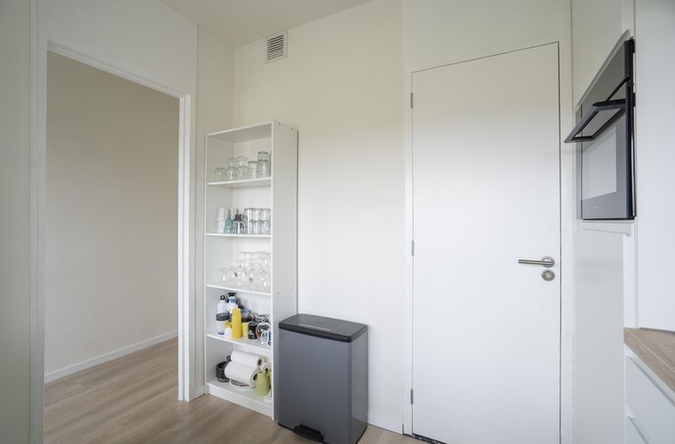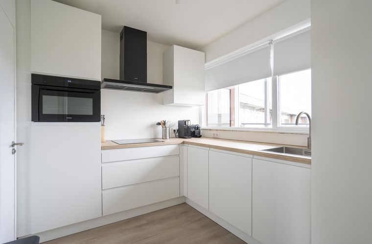 De vernieuwde keuken (2025) is voorzien van een keukenunit in L-opstelling met een koelkast, een vaatwasser, een combi-oven en een inductiekookplaat met afzuigkap. Vanuit de keuken is de eveneens vernieuwde badkamer bereikbaar.