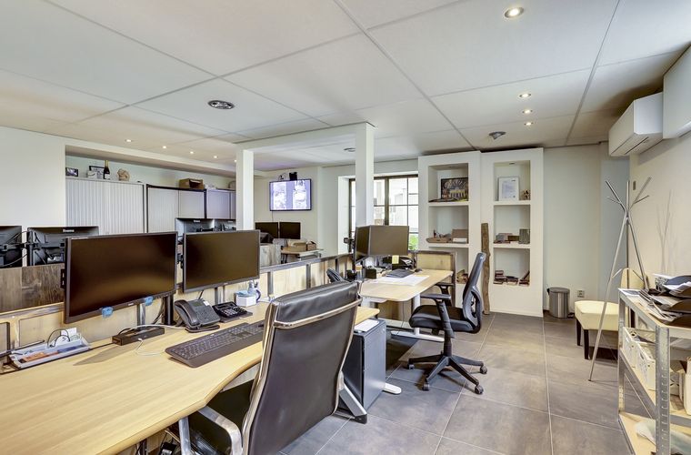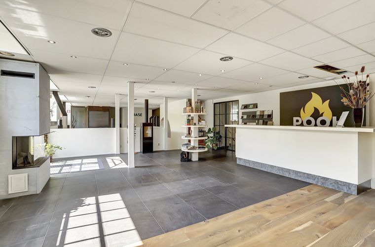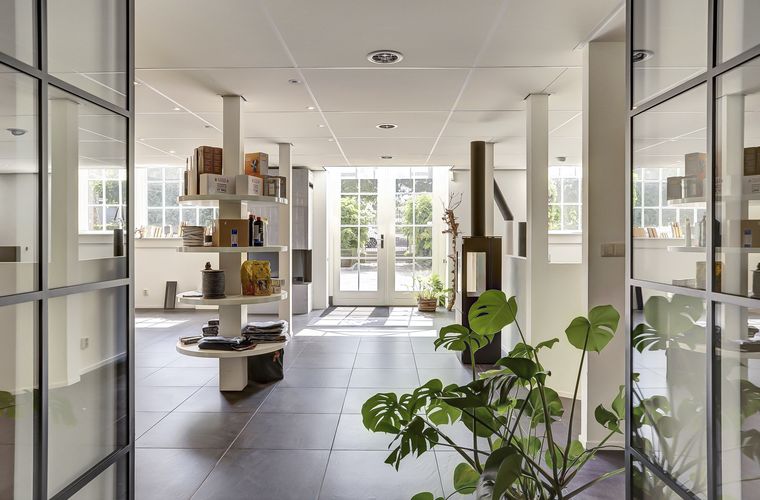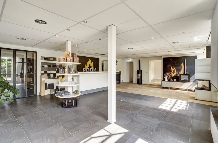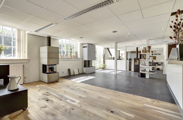 - Riante showroom-/kantoorruimte + magazijn van circa 909 m² + ca. 293 m² aan (boven) bedrijfswoning met ruim dakterras van ca. 76 m²