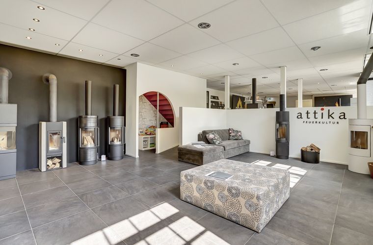 Eerste verdieping: via een vaste trap kom je op de eerste verdieping; showroom, doorloop naar meer kantoorruimte en het woongedeelte; als je binnen komt bij het woongedeelte beland je in de royale, luxe woonkeuken; een ruime woonkamer met veel lichtinval.