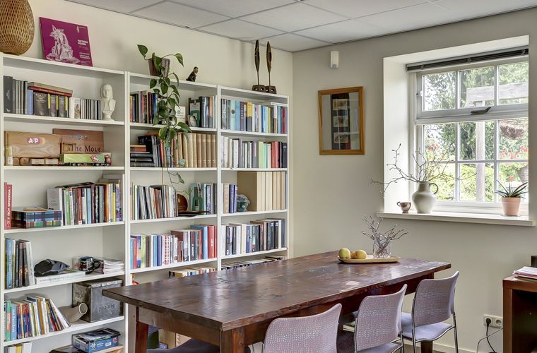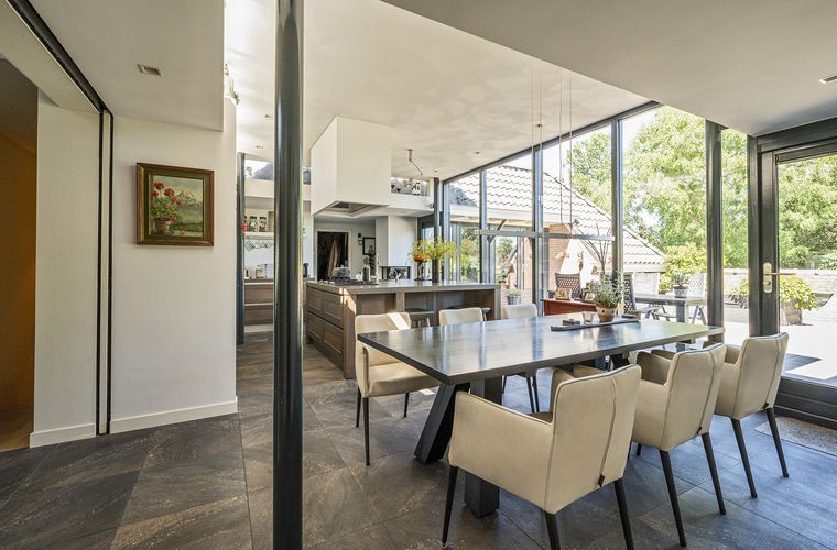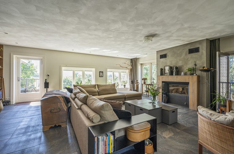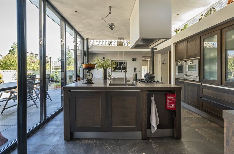 Het woonhuis bevindt zich boven de showroom, een ideale combinatie voor wonen en werken. Het woonhuis is inpandig, met de lichte open leefkeuken biedt een prachtige plek om samen te komen en te genieten van een met liefde bereide maaltijd. De keuken loopt naadloos over op het dakterras wat een verlengde biedt van de leefruimte door middel van de glazen pui. De royale woonkamer is toch knus en biedt ruimte voor de hele familie, zie jij jezelf al zitten voor de knisperende haard?