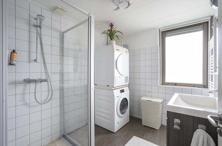 Boven vind je drie ruime slaapkamers en een nette badkamer met inloopdouche, wastafelmeubel en aansluiting voor de wasmachine. De vaste trap naar de zolder maakt deze verdieping extra bruikbaar: ideaal als werkplek, hobbyruimte of gewoon voor wat extra bergruimte. Een extra slaapkamer is eenvoudig gemaakt want dankzij de twee extra geplaatste dakramen heb je hier fijne lichtinval.