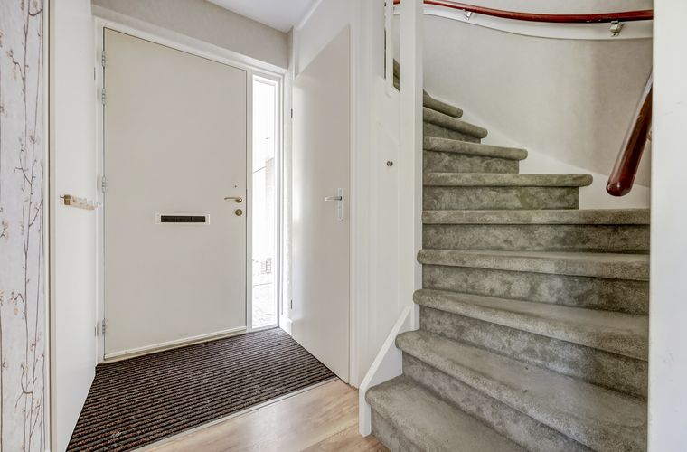 Begane grond: entree in de hal met meterkast, toilet en trapopgang naar de eerste verdieping; de woonkamer is voorzien van een glazen schuifpui aan de achterzijde en de half open keuken is voorzien van de volgende inbouwapparatuur; spoelbak, luxe combi-stoomoven met magnetron, kraan met uitrekslang, vaatwasser, 4-pits inductiekookplaat en een koel-vries combinatie.